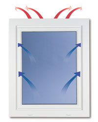 Diese Systeme arbeiten mit intelligenten, labyrinthartigen Lüftungswegen in Rahmen, Flügel und Dichtungsprofilen des Fensters. Sie nutzen dabei die Druck- und Sogbewegungen des Windes an den verschiedenen Gebäudeseiten, um frische Luft einzulassen und die verbrauchte Raumluft abzusaugen. Bei geschlossenem Fenster lassen sie gezielt Frischluft in die Lüftungskammern ein, die sich aufgrund der hier vorhandenen mittleren Temperatur erwärmt. Diese Frischluft tritt raumseitig weit über Kopfhöhe wieder aus - also an einer für die Zirkulation optimalen Stelle. Es erfolgt eine permanente Zufuhr von Frischluft und Abfuhr von verbrauchter Luft, ohne dass es zu Zugerscheinungen, Windgeräuschen oder Lärmbelästigungen kommt.